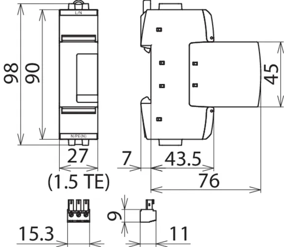 | SPD、EN 61643-11 / IEC 61643-11 に準拠 | タイプ 2 / クラス II |