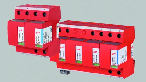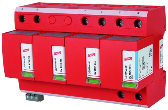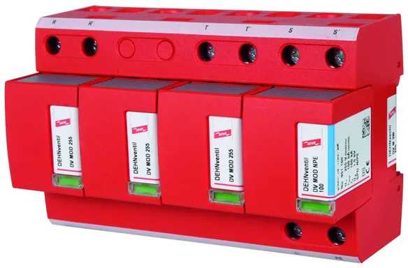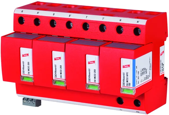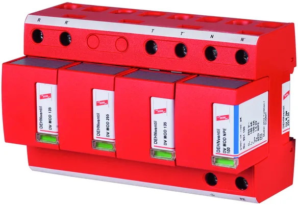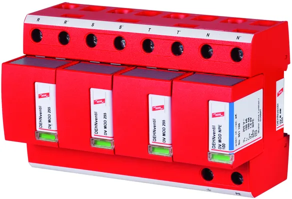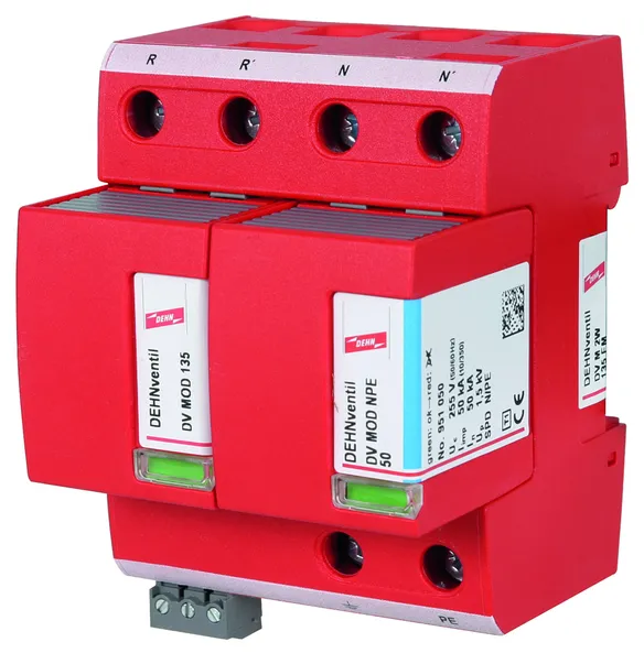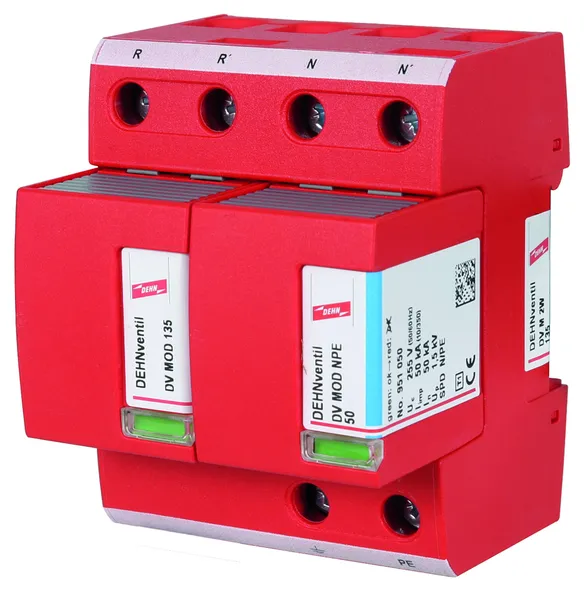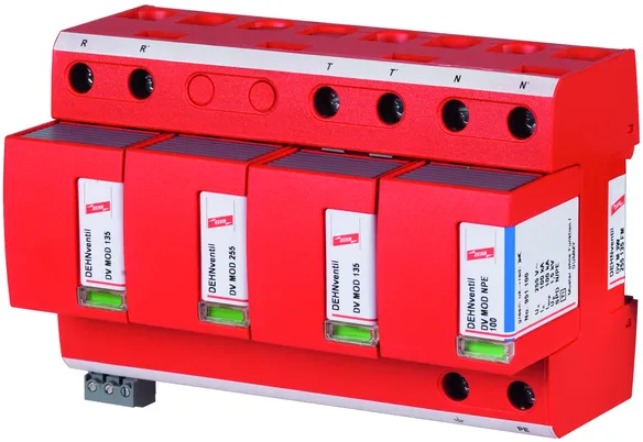 - ベース部とプラグ式保護モジュールで構成された、スパークギャップベースのすぐに配線可能な複合式避雷器