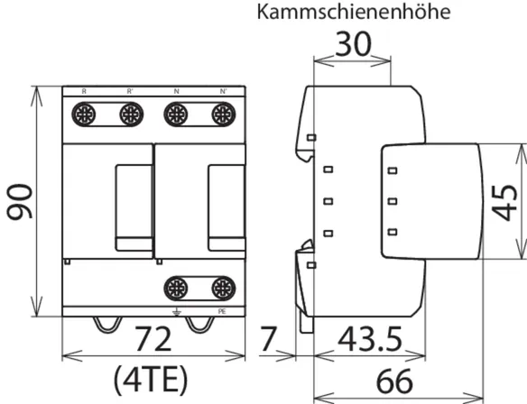 | 設置寸法 | 4 TE、DIN 43880 |