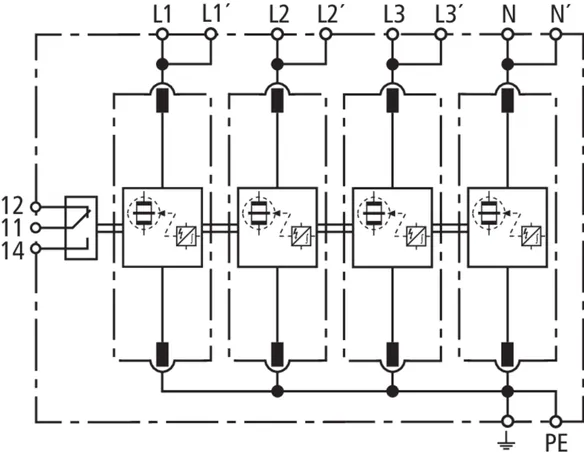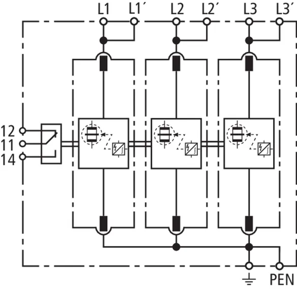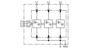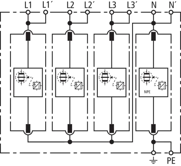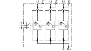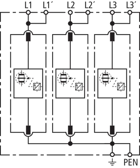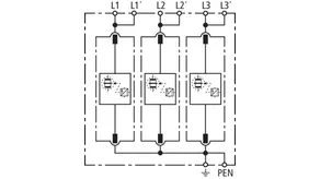 | 雷インパルス電流 (10/350 µs) [L1+L2+L3-PEN] (I合計 ) | 75 kA |