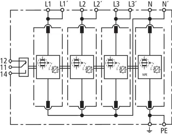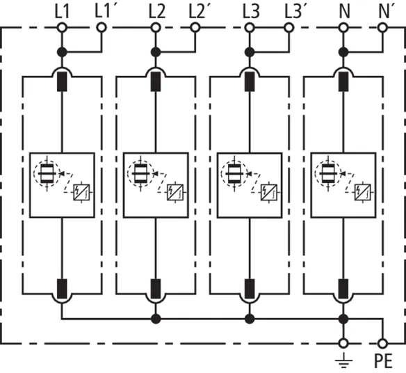 | 雷インパルス電流 (10/350 µs) [L1+L2+L3+N-PE] (I合計 ) | 100 kA |