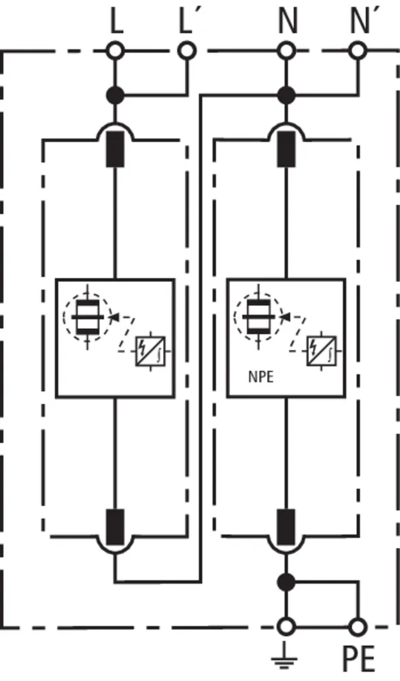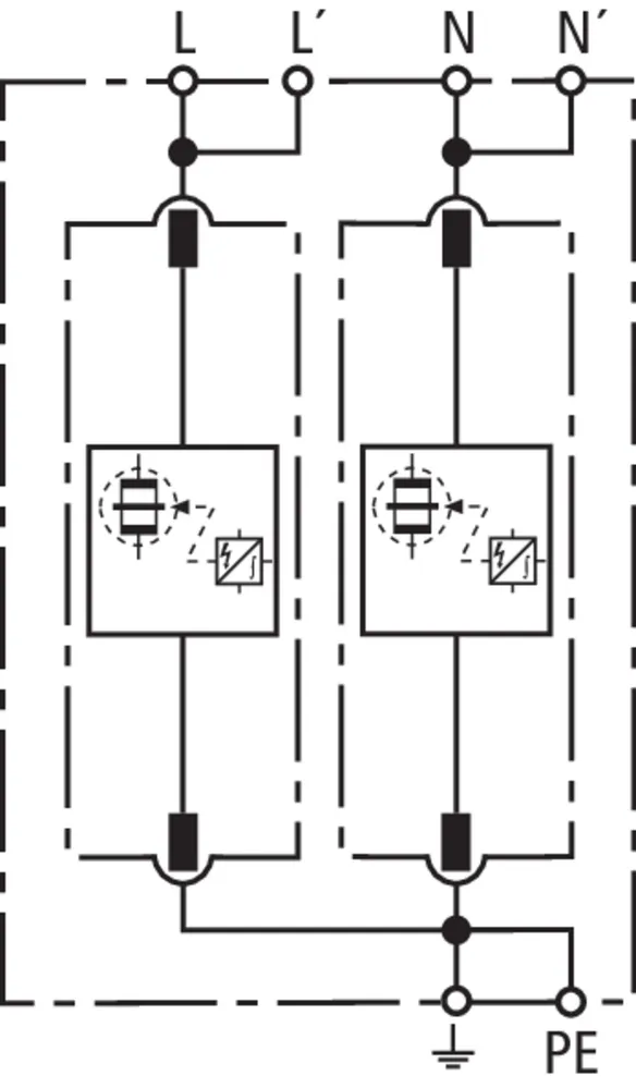 | 雷インパルス電流 (10/350 µs) [L-N]/[N-PE] (Iimp ) | 25 / 100 kA |