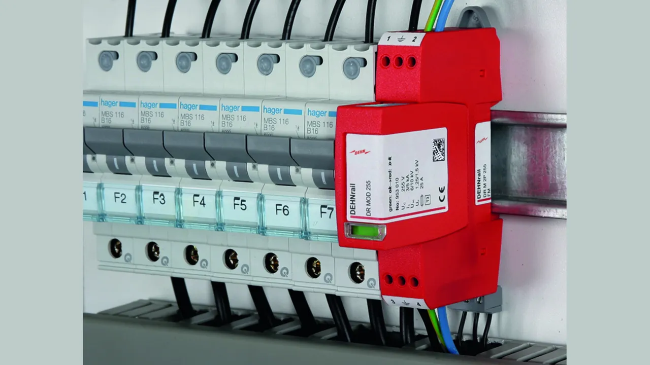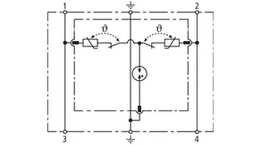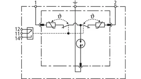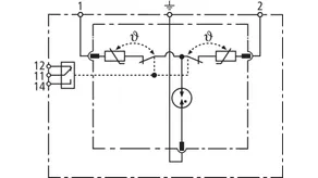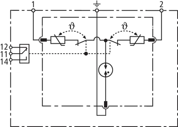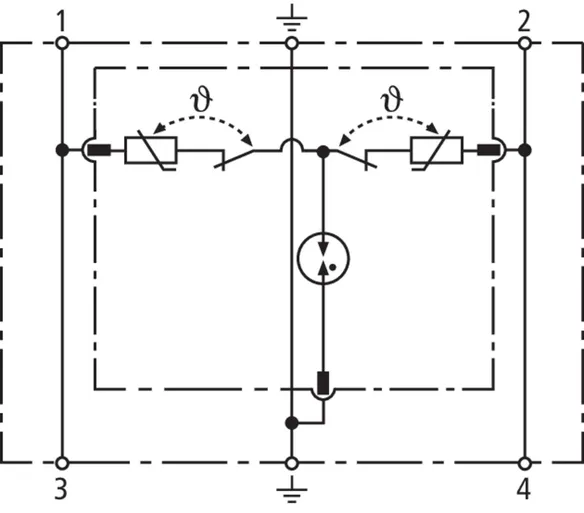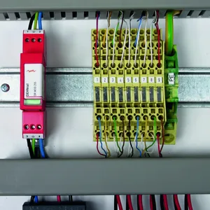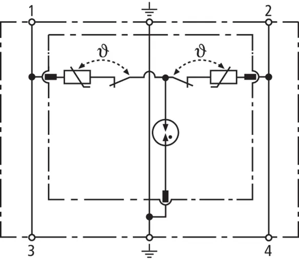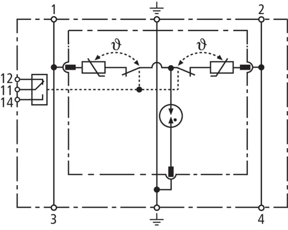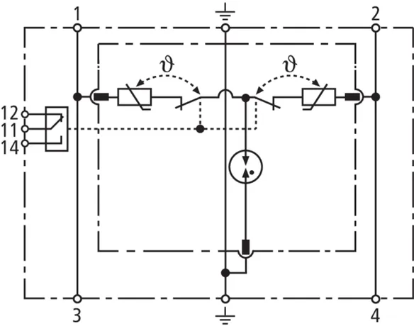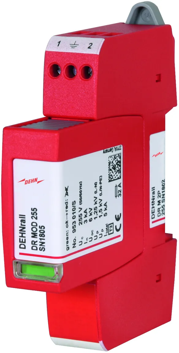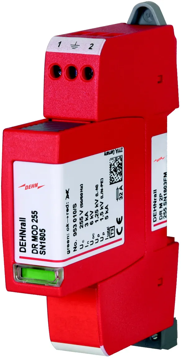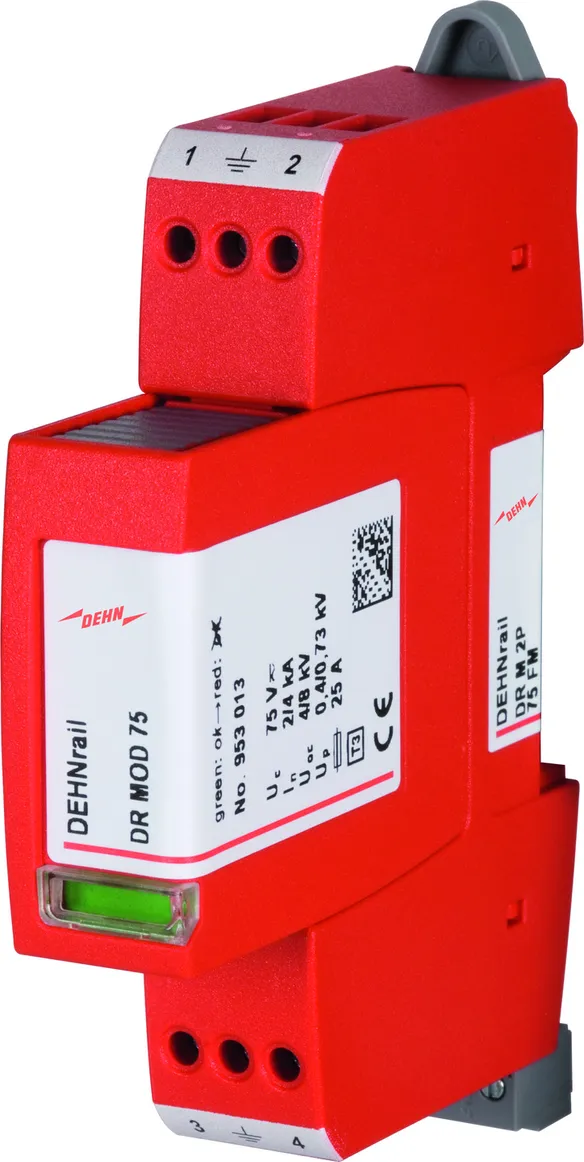 - ベース部とプラグ式保護モジュールからなる 2 極過電圧避雷器