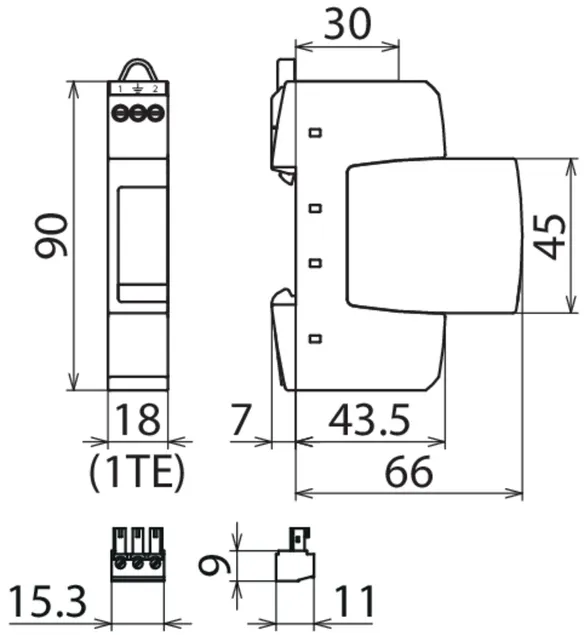| SPD、EN 61643-11 / IEC 61643-11 に準拠 | タイプ 3 / クラス III |