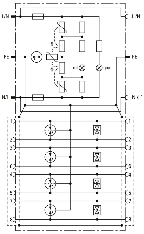 - 端末機器の電源側およびデータ側の複合型過電圧保護装置